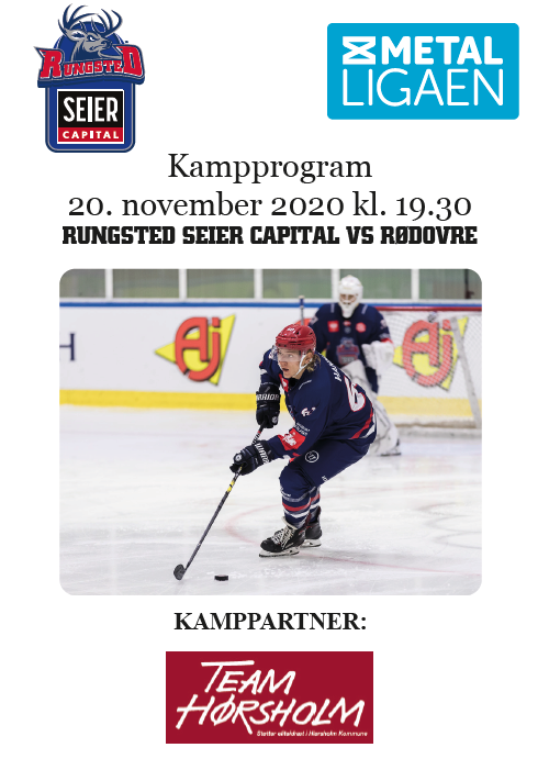 KAMPPROGRAM 20. NOVEMBER 2020 20. november 2020 Så er vi klar med kampprogrammet til aftenens kamp mod Rødovre Kampprogrammet kan læses online ved at klikke HER Mattias Persson: Vi havde en god snak i pausen imellem 1. Og 2. Periode PERSSON SKIFTER TIL HERLEV