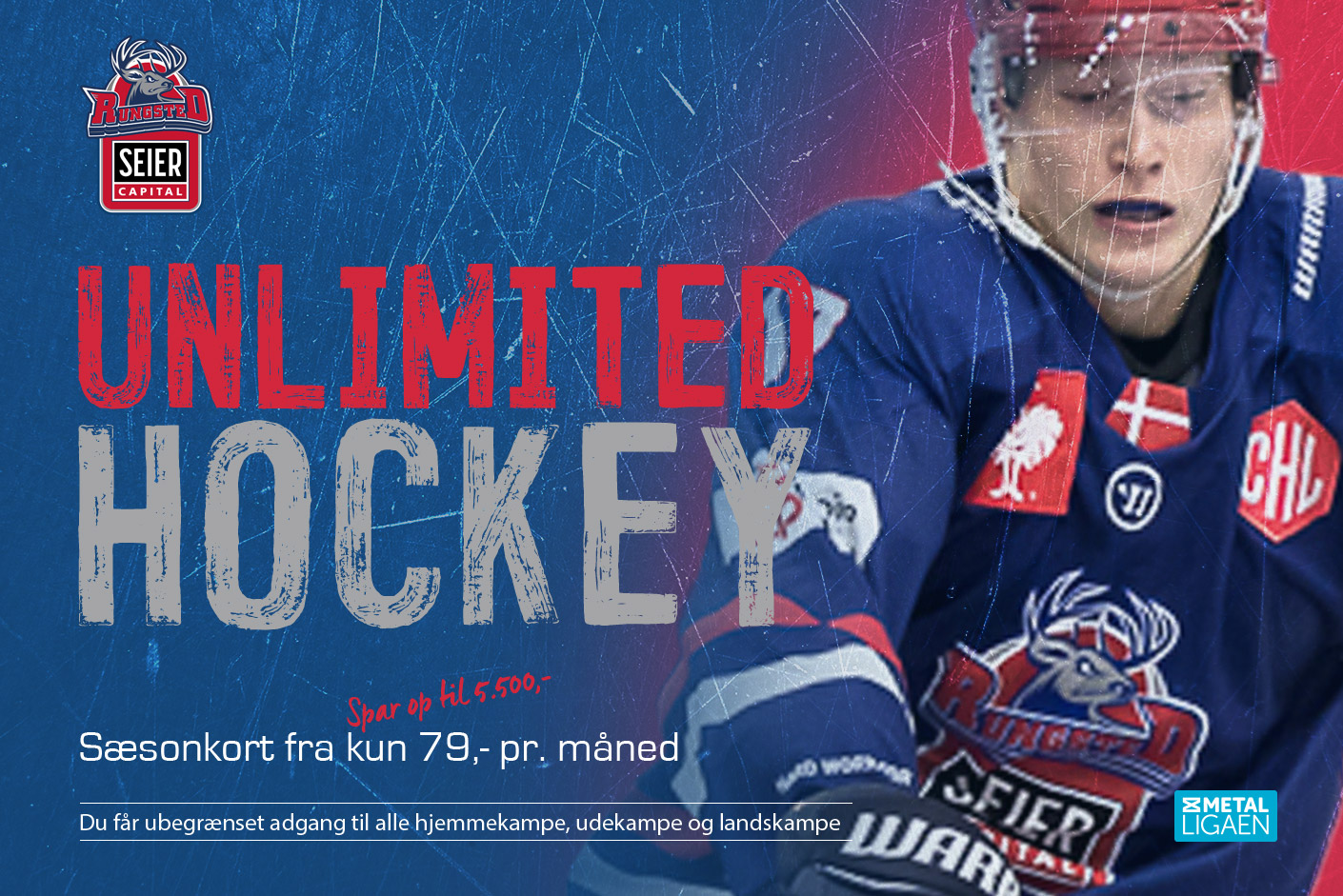 Konceptet er døbt UNLIMITED, og det betyder ikke blot, at tilskuerne kan komme gratis til ishockey i Rungsted. Nej, kortet gælder såmænd i OTTE af ni arenaer i Metal Ligaen. Uanset hvilken kamp, man vil ind til.