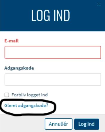 Har du glemt din adgangskode men stadig kan huske den e-mailadressen, du benyttede, klikker du på glemt adgangskode.